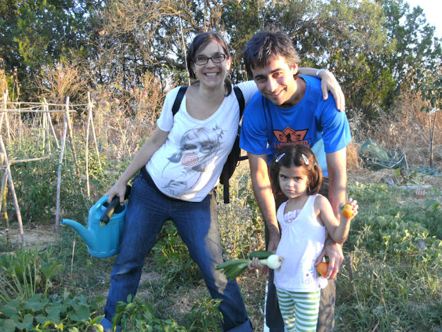 Aquí tenemos a "Coca" con su mujer y su hijita Cristina, en su huerto solo falta Manuel; ya le pillaremos otro día.